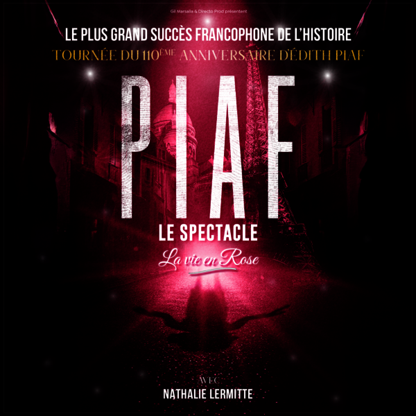 Après avoir conquis plus de 2 millions de spectateurs dans plus de 70 pays, Piaf ! Le Spectacle le plus grand succès francophone de l'histoire revient dans une nouvelle version encore plus poignante.Dans ce nouveau chapitre, Nathalie Lermitte, unanimement saluée comme la plus grande interprète actuelle du répertoire d'Edith Piaf, plonge le public dans l’univers intime et vibrant de la Môme à travers ses plus grands succès : La Vie en Rose, Non, je ne regrette rien, L’Hymne à l’amour, Milord, Padam…Accompagnée par les meilleurs musiciens français, sublimée par des images d’archives inédites et une mise en scène immersive, Piaf ! Le Spectacle fait revivre la magie de cet icône éternelle de la chanson française.Piaf ! Le Spectacle « La Vie en Rose » est bien plus qu’un hommage, c’est un moment de grâce où la magie d’Edith Piaf renaît pour continuer à faire vivre sa légende.